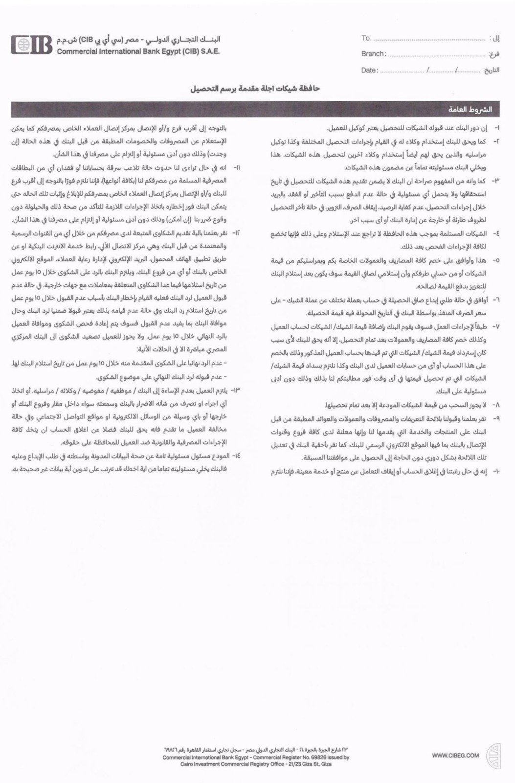 نرفق لسيادتكم طيه الشيكات المبينة أدناه والتي نرجو التفضل بتحصيلها لحسابنا طبقًا للشروط العامة